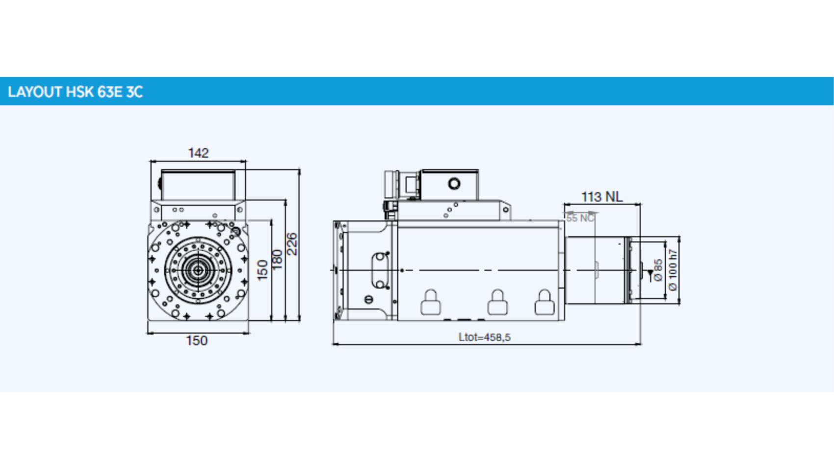 - Air and lubrication passage through the spindle (Oil Mist, MQL) to improve the machining efficiency of wood, light alloys and composite materials